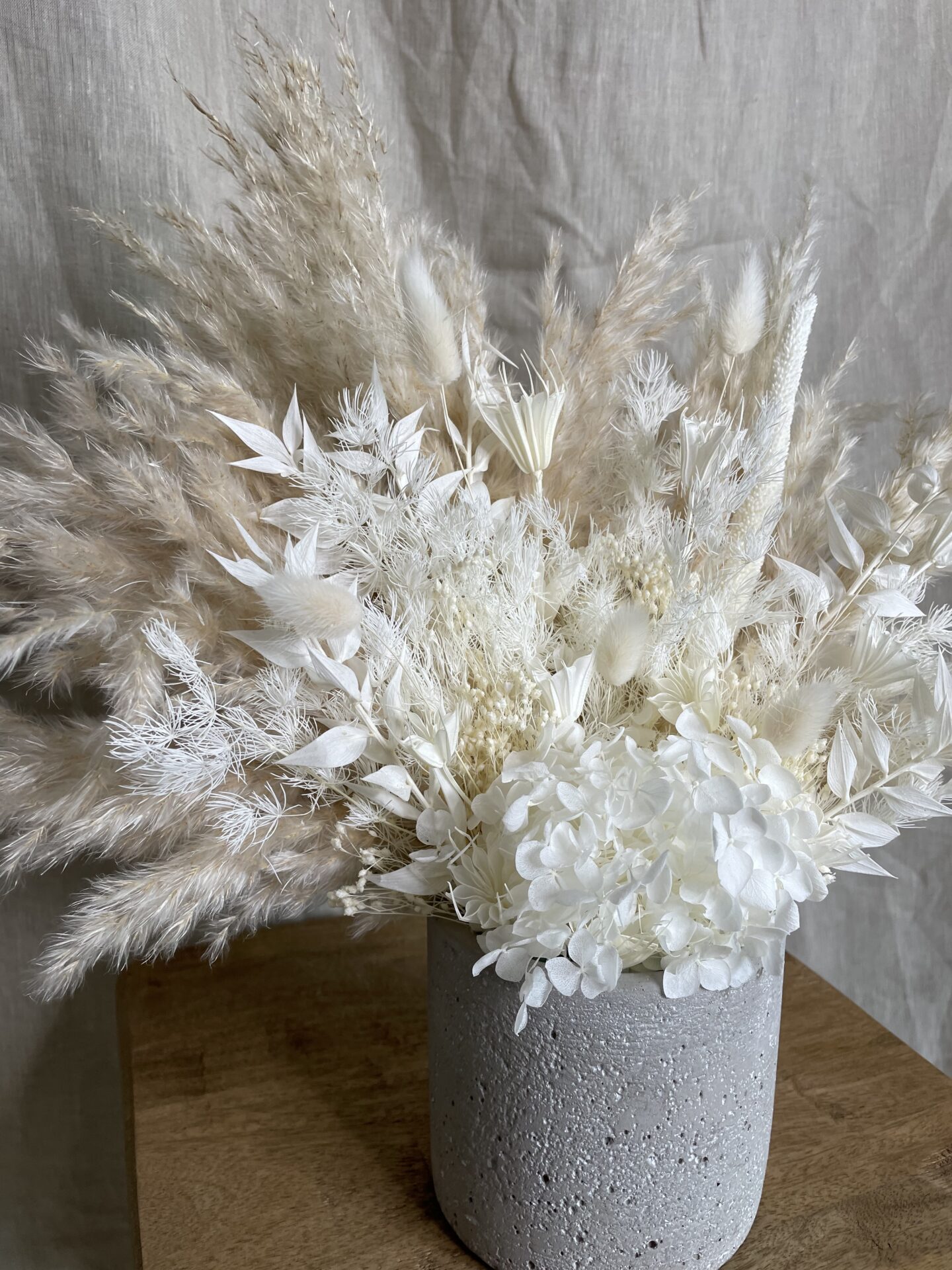 The neutral one is packed full of the finest neutral stems and is a perfect choice for those who are just as obsessed with dried flowers as we are, its fluffy, soft muted tones and rustic cement pot, make this pampas pot a perfect additional to any home decor.
